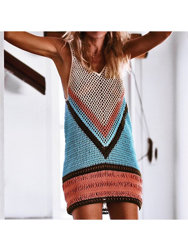 Vacation Sandbeach Blouse Bikini Sexy Strip Knitted Sweater Vest