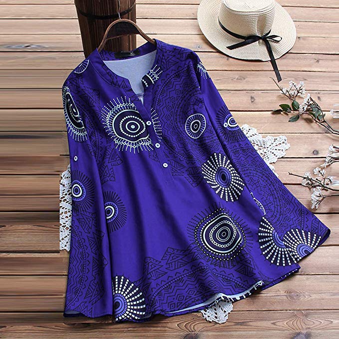 Women's Loose Plus Size Print Long Sleeve Top Blouse