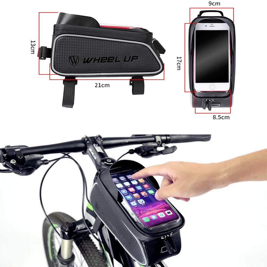 Bike Frame Bag Fit for iPhone 11 / 11 Pro / 11 Pro Max / XR / XS Max / XS / X / 8 / 8 Plus / 7/ 7 Plus /6 / 6S /6 Plus / 6S Plus 5S SE 5 5C Samsung Galaxy S8 /S7 /S6 / S6 Edge / S7 Edge /S6 Edge S5 S4 Note 3 4 5 Huawei Xiaomi LG Sony HTC OnePlus Smartphones' size up to 6.5 inch. Also suitable for phones even with a slim case. The Home Button is NOT functional through the cover.