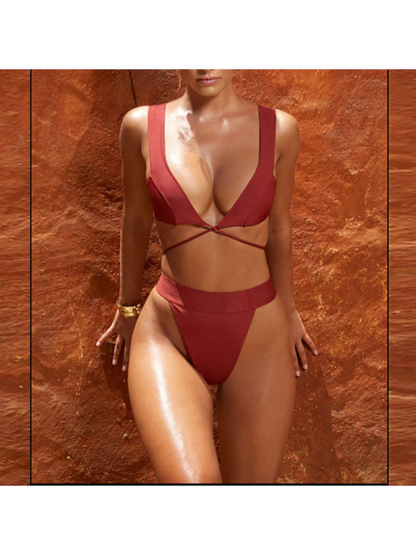 Female Sexy High Waist Belt Beautiful Back Swimsuit