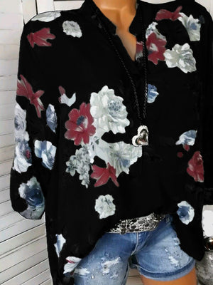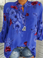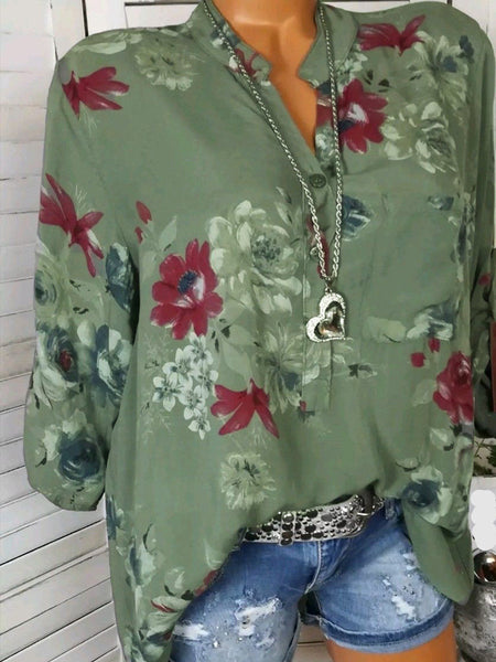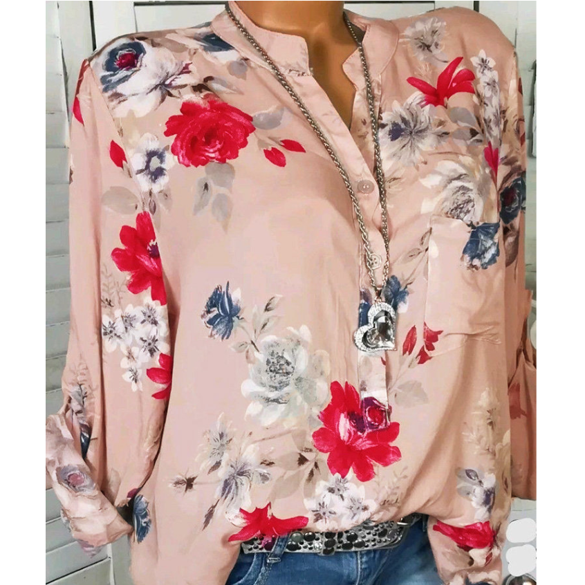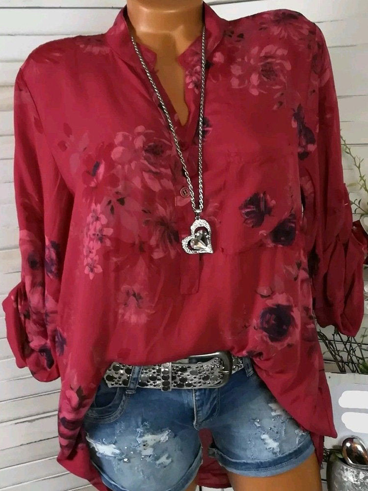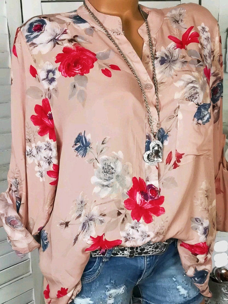 Floral Printed Stand Collar Long Sleeve Chiffon Blouses – pingchic