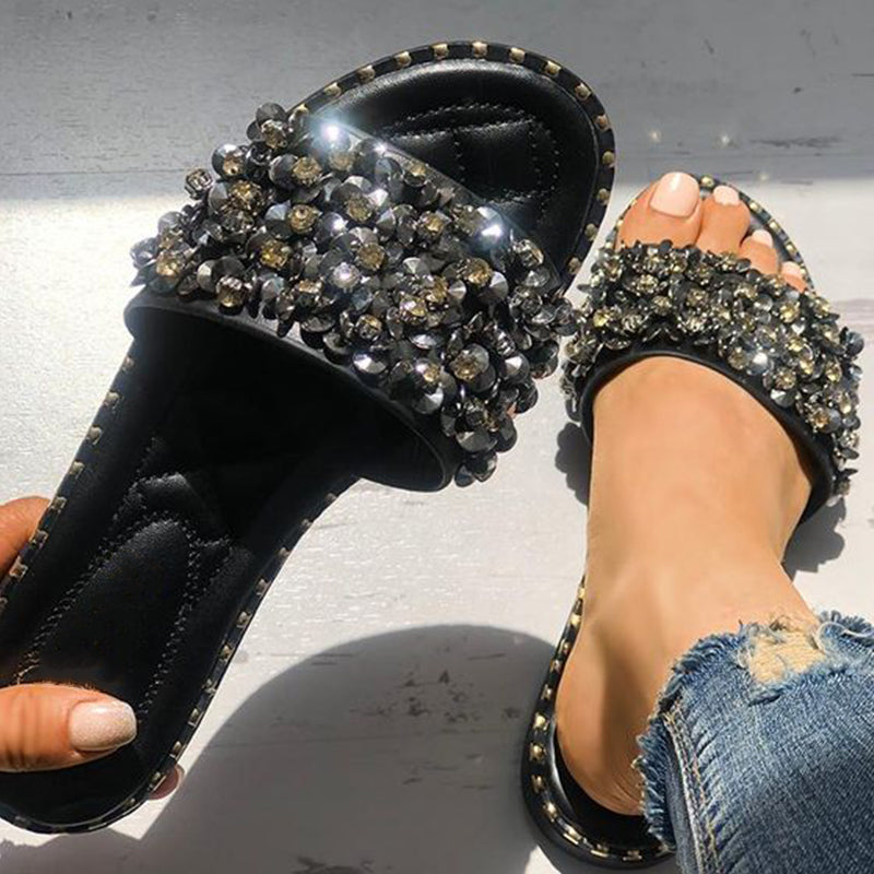 Women Crystal Diamond Bling Beach Slides Sandals Slipper