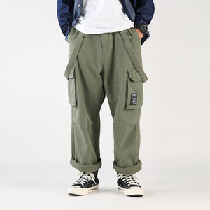 Color: Black, Army Green, Dark Blue Waist Type: Mid Waist Fabric Material: Cotton Elasticity: No Bomb Clothing Version: Loose Style Details: Pocket Decoration Process Treatment: Water Washing Trouser Mouth Style: Straight