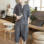 Men's Chinese Style Sets Short-sleeved T-shirt + Shorts Casual Two-piece