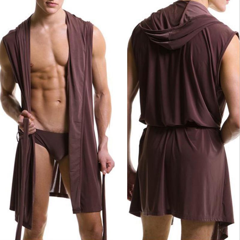 Bathrobe Sleeveless Pajamas Men's Ultra-thin Hooded Robe