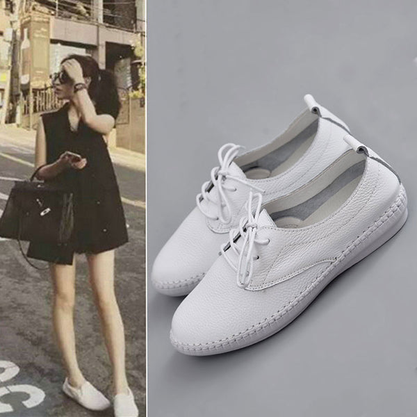 Women Casual Lace Up White Flat Shoes
