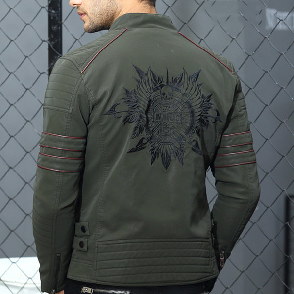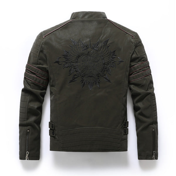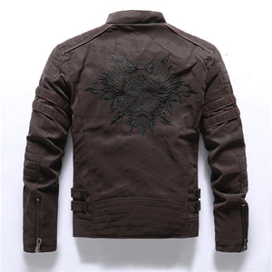 PU Brushed Suede Motorcycle Embroidered Jacket