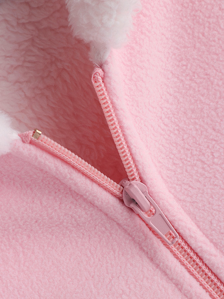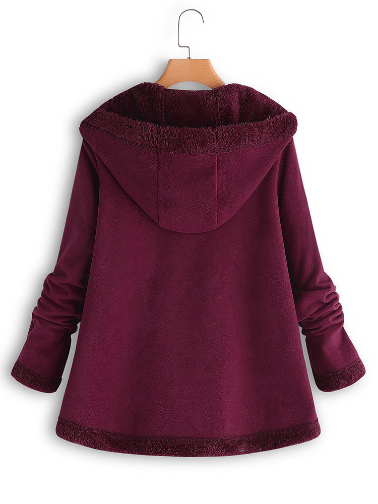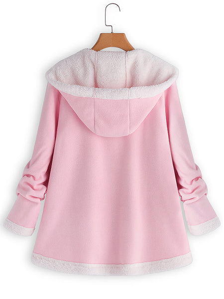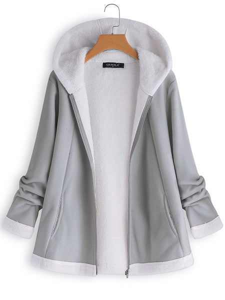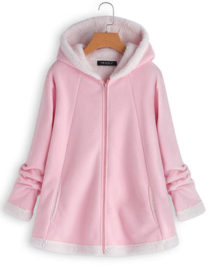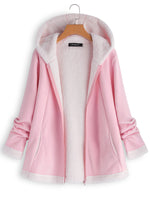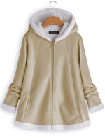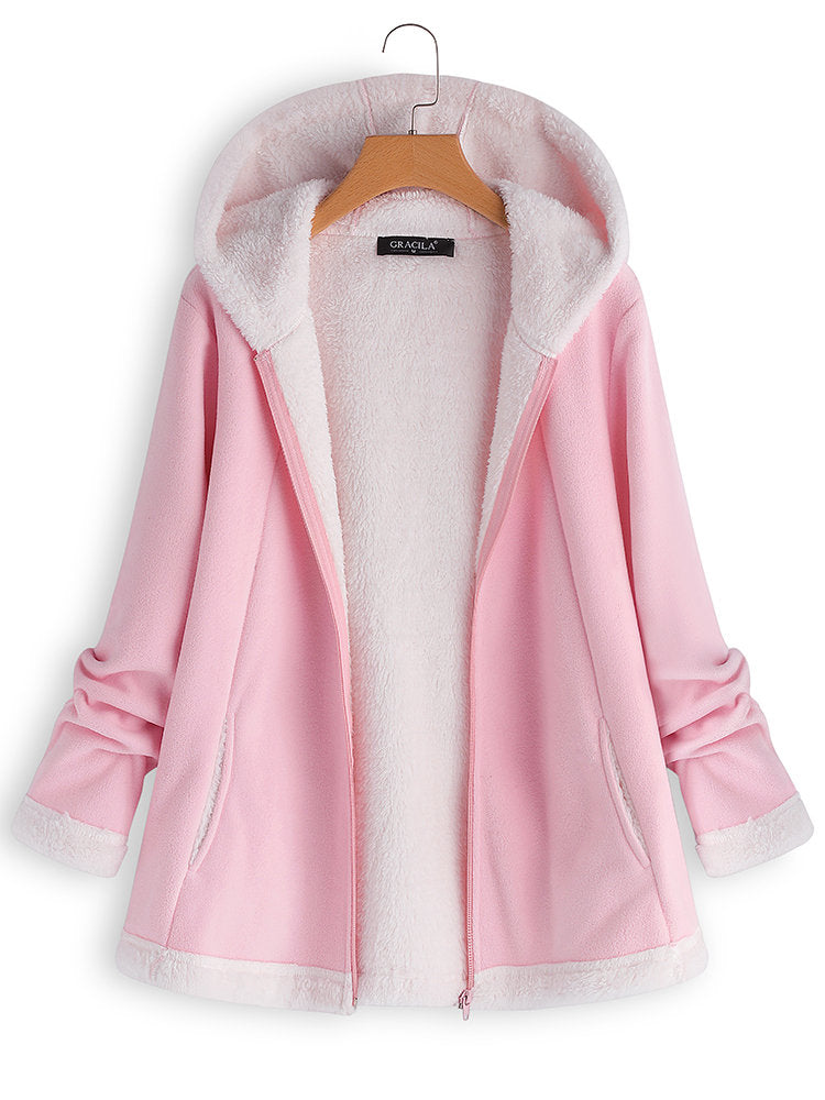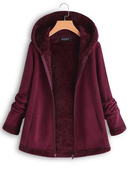 Casual Hooded Zipper Pocket Long Sleeve Fleece Coats For Women