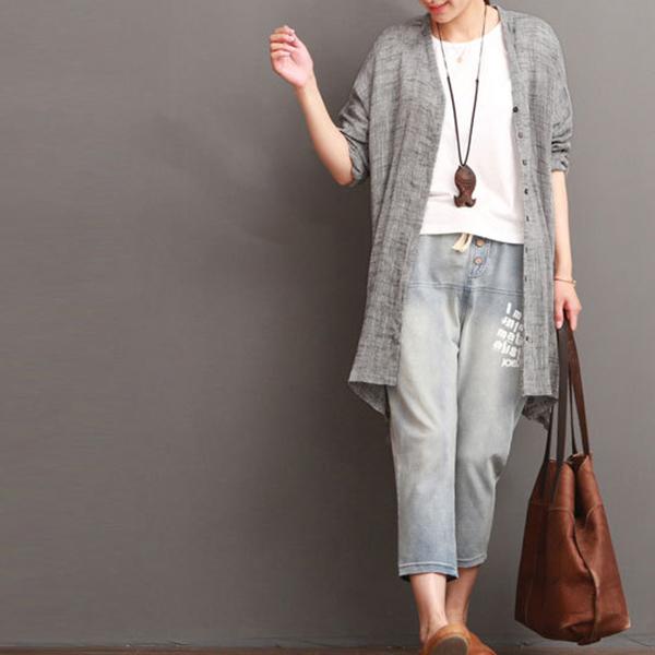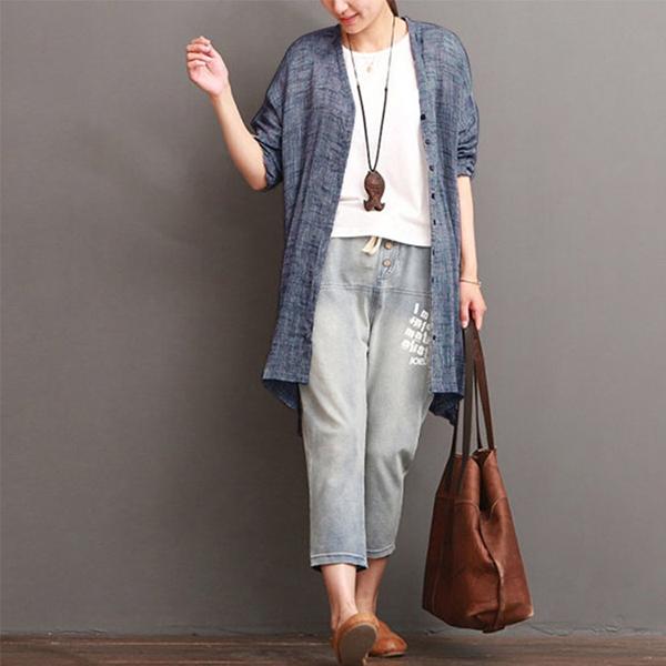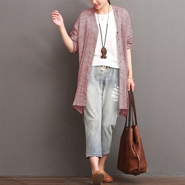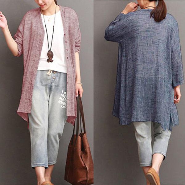 Casual Solid Cotton&Linen Cardigan – pingchic
