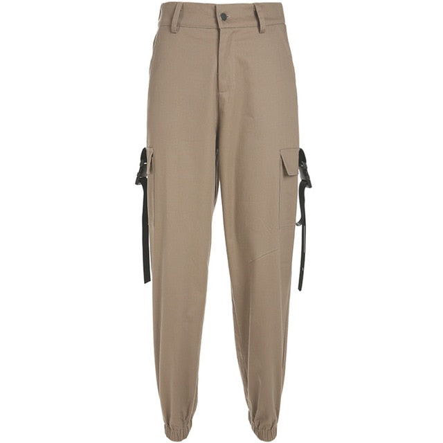 Gender: WomenMaterial: Spandex,CottonLength: Full LengthStyle: CasualFit Type: LooseFabric Type: BroadclothClosure Type: Zipper FlyDecoration: Fake Zippers,PocketsPattern Type: SolidWaist Type: HighFront Style: FlatPant Style: Cargo Pants