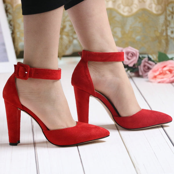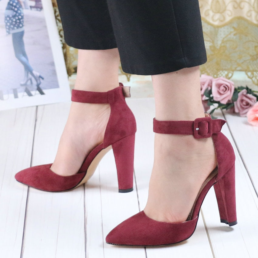 Chic shoes! They are made of flock of good quality. Shoes are not cardboard, but very much even on natural suede. Inside-soft artificial leather. The heel is thick, stable, has a square shape. Shoes will fit any ankle. The size table of the seller is correct, so feel free to focus on it.