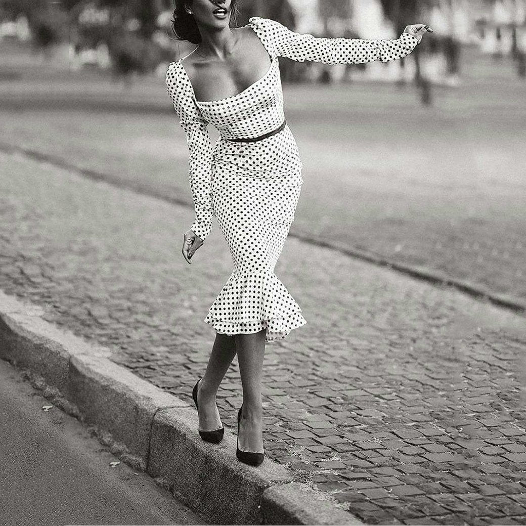 Sexy Square Neck Polka Dot Bodycon Dresses – pingchic