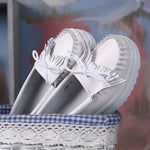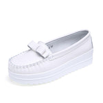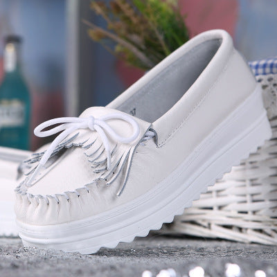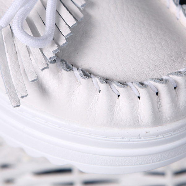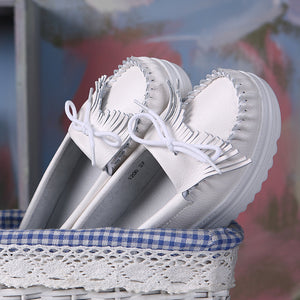 White Genuine Leather Tassel Heightening Platform Shoes