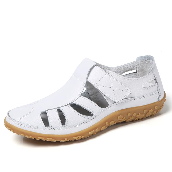 Women Genuine Leather Hollow out Flat Sandals – pingchic